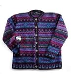 Women's New Zealand Wool Holiday Cardigan in Festive Shades. Reminiscent of Himalayan Sherpa, our heavy, 100% New Zealand wool Cardigan in festive shades is sure to keep you warm - beautifully. Hand-knit in the Lost Horizons women's workshop, the sweater incorporates traditional Nepalese folk art designs and colors. Lost Horizons was established over two decades ago to help Nepalese women develop their own cottage industry. The workmanship is exquisite, including the unique stitching that trims the collar, placket, cuffs and waist. Front pockets keep hands warm. Hand wash or dry clean. Imported. Size SM (4-6) M (8-10) L (12-14) XL (14-16).../ Women's New Zealand Wool Holiday Cardigan in Festive Shades / Sweater Wool
